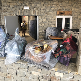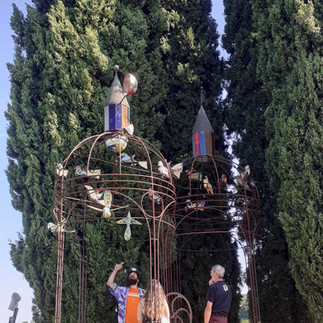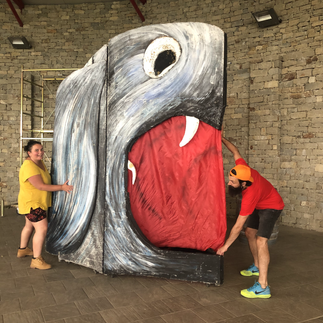 Once the pieces of art arrived to Bergolo, together with the artist Gianpaolo we prepared the exposition in the little chapel on top of the hill ⛪️. It was really inspiring to take part of it, to feel the pieces on our hands and to contribute on the decoration. We also put a HUGE canvas on the theatre and a whale for the opening of the music festival that happened this Saturday in "Il teatro della pietra". As a present of gratitude Gianpaolo gave us each of us a bottle of wine for helping him with the work, thank you!